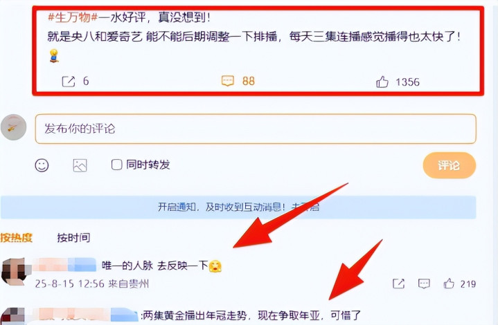 尤其是与其他每周只播三天,每天播两集的剧比拟,《生万物》天天播,一播便是三集起步,在网罗平台有时还能看 4 集,这种 “闪电排播” 的面容激发了不雅众的诸多揣测,有东说念主合计是该剧的数据太差,但事实并非如斯。