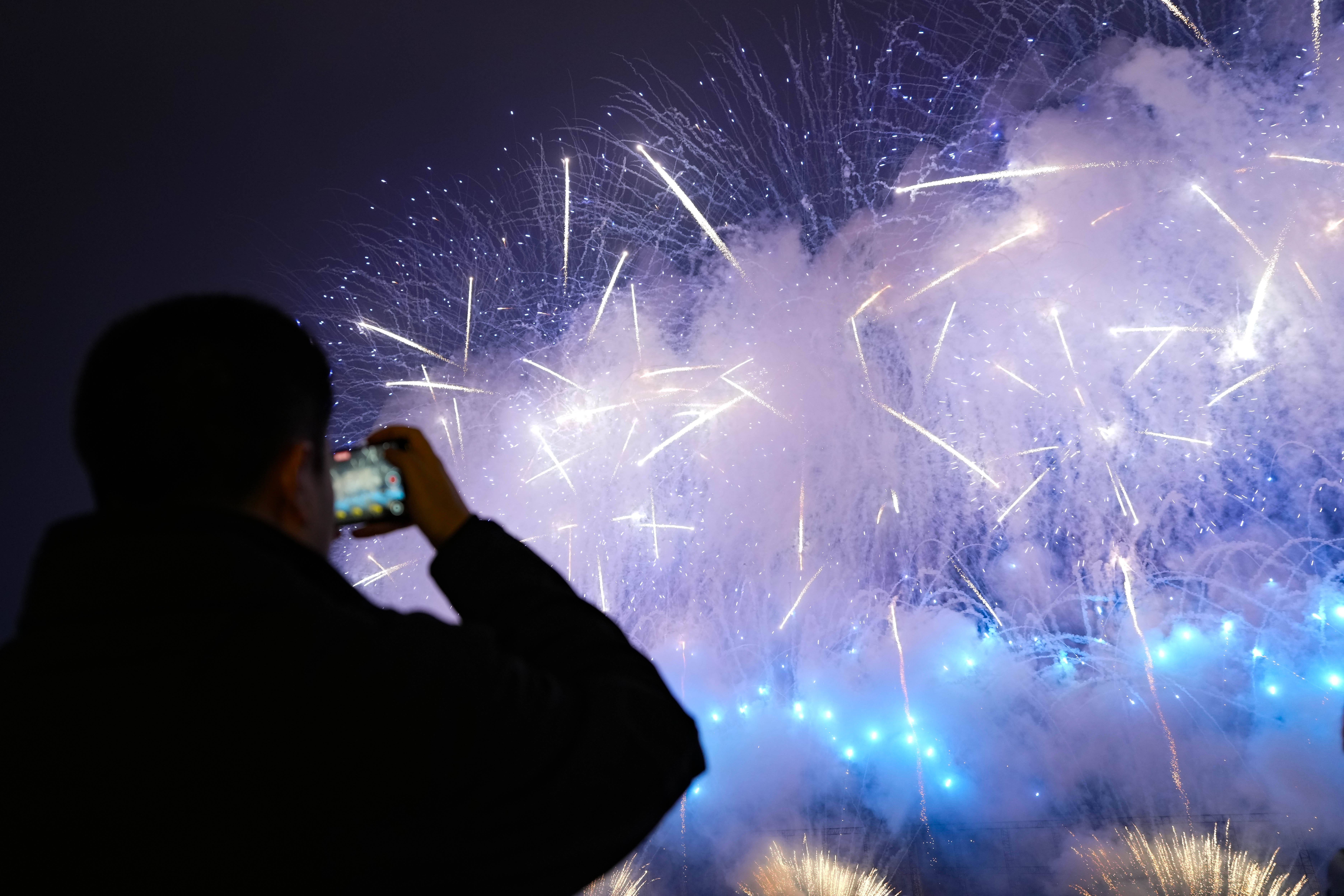 市民和旅客在湖南省浏阳市太空剧院隔邻不雅看烟花扮演(2024年12月28日摄)。新华社发(浏阳市委宣传部供图)