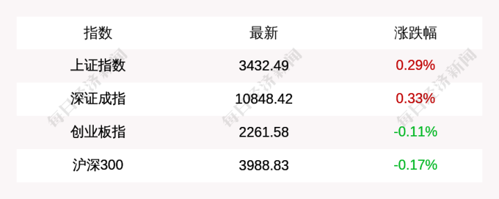 每经AI快讯:北京技术12月11日15:00,上证指数收盘高涨9.83点,涨幅为0.29%,报收3432.49点,成交额6929.3亿元;深证成指收盘高涨35.84点开yun体育网,涨幅为0.33%,报收10848.42点,成交额10834.47亿元;创业板指收盘下降2.47点,跌幅为0.11%,报收2261.58点,成交额4883.92亿元;沪深300收盘下降6.81点,跌幅为0.17%,报收3988.83点,成交额3107.13亿元。