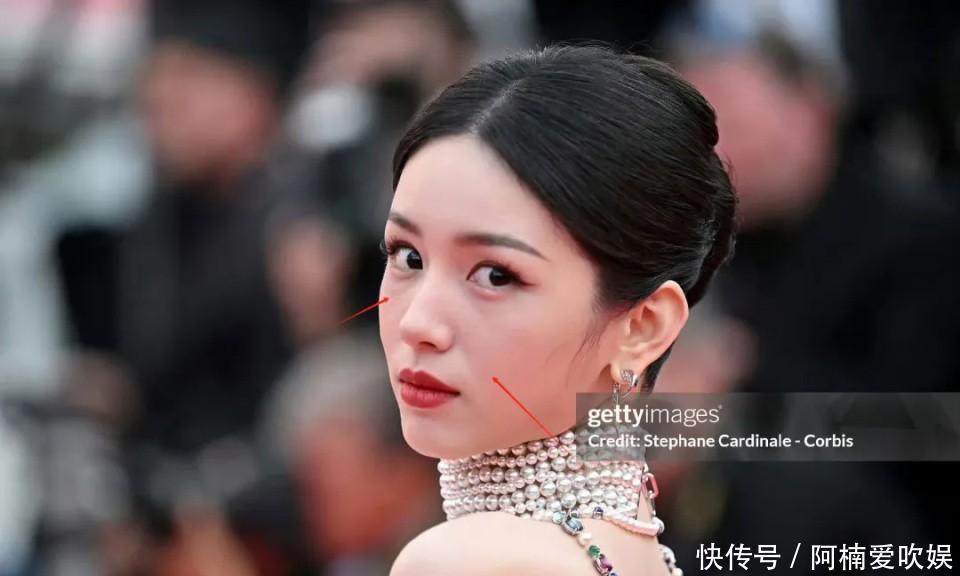 她脖子上的星星珠宝照旧很好意思的,像藏品一样细巧,仅仅浮肿的脸型拉低了她的气质。