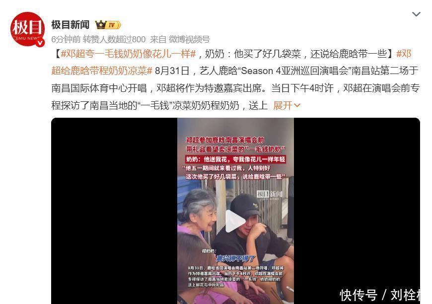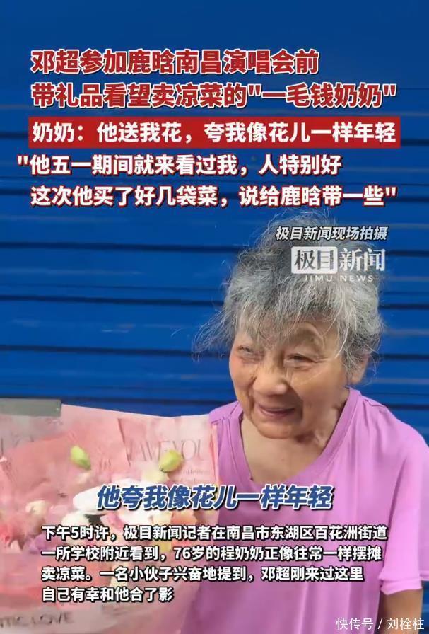 8月31日下昼四点,邓超在担任鹿晗南昌演唱会嘉宾前,没去彩排也没休息,而是拐进南昌市东湖区百花洲街说念,专程探问一位76岁的凉菜摊主——程奶奶。东说念主称“一毛钱奶奶”的她,只怕是内娱明星行程表中最终点的一站。