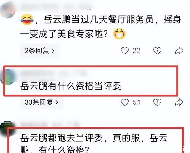 并质疑这个人人水平一般,小岳岳何处也莫得多好,批驳区尽是对他身份的质疑,以为他只不外作念过干事员辛勤,       但其真实节目中他就说过我方当过厨师,是以内部的门谈他照旧了解的,但照旧未免被吐槽,