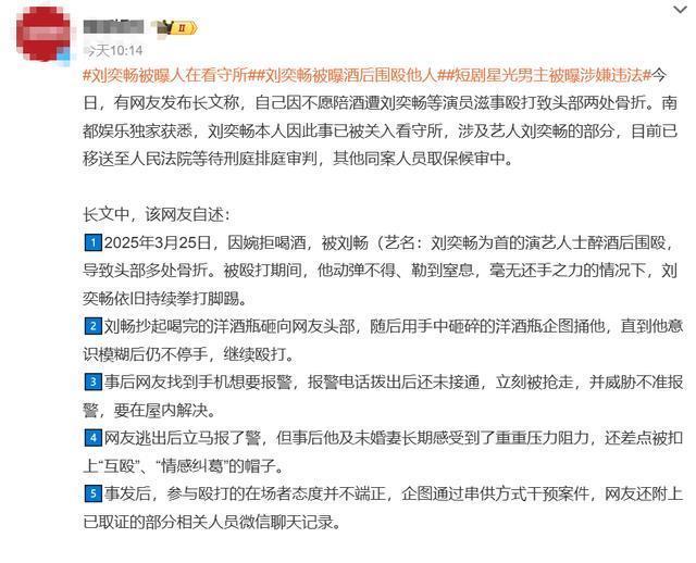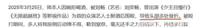 事情的启事是在本年3月份,据网友描摹他之是以和刘先坐蓐生冲破,是因为他婉拒了对方递来的羽觞,他可不念念当他们这群名东谈主眼中拿来“取乐子”的陪酒东谈主。 可他的拒却在刘先生眼里,便是不识抬举,不给我方顺眼。