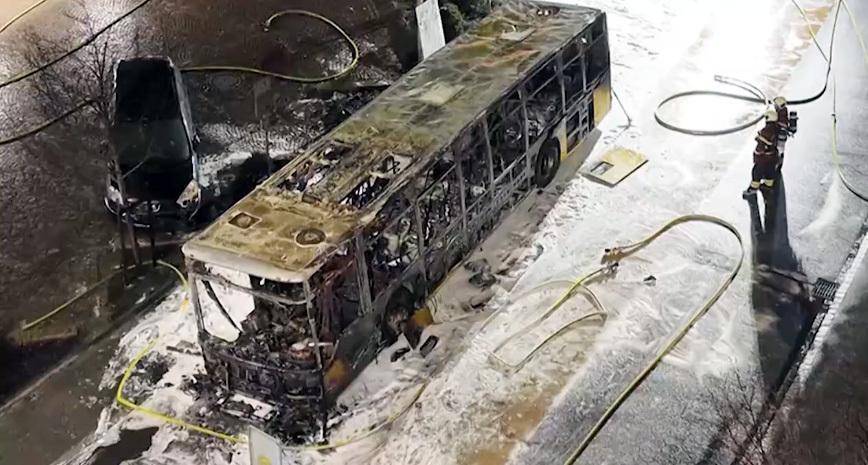 被火焰归并后的公交车破败