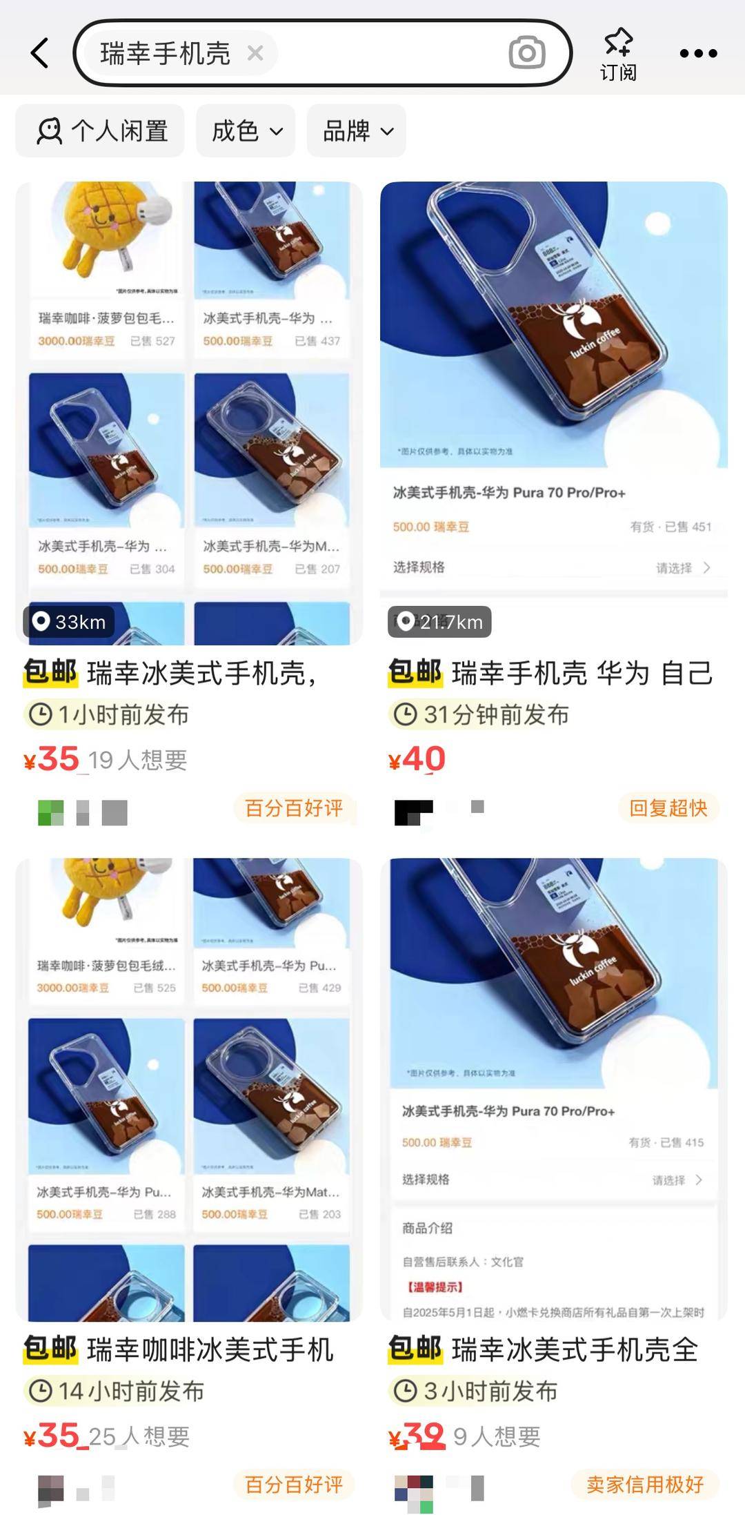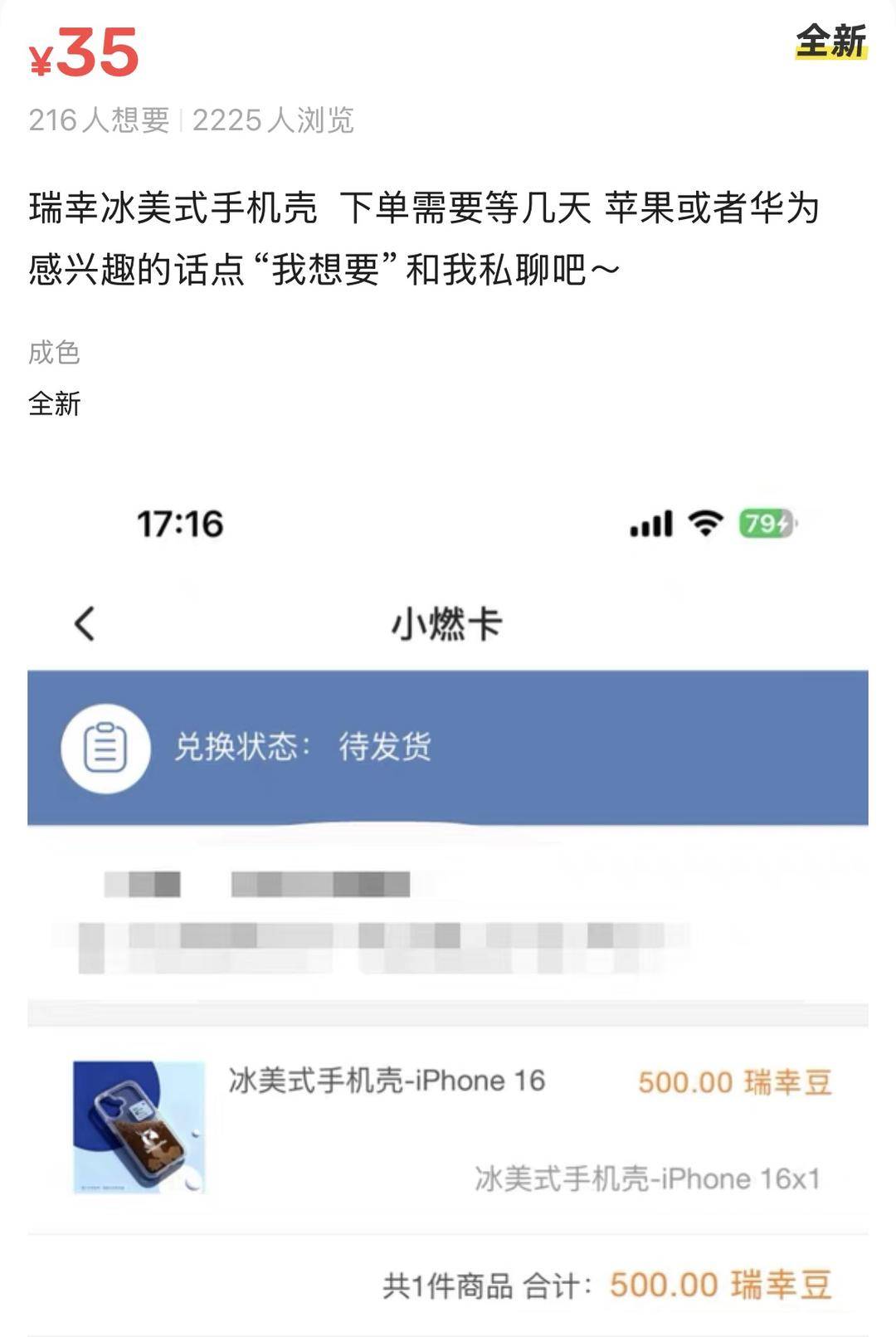 记者在网友发布的视频中看到,这款手机壳的透明壳身内装有可流动的棕褐色“咖啡液”,搭配了几颗仿真“冰块”,外壳印有瑞幸LOGO,还“贴”上了“耶加雪菲·好意思式”字样的标签图案。关于这款手机壳的获取神情,有网友在驳斥中显现,它当今并非对外销卖品,仅能由瑞幸里面职工通过“小燃卡”兑换赢得,鄙俗浮滥者暂时无法平直脱手。